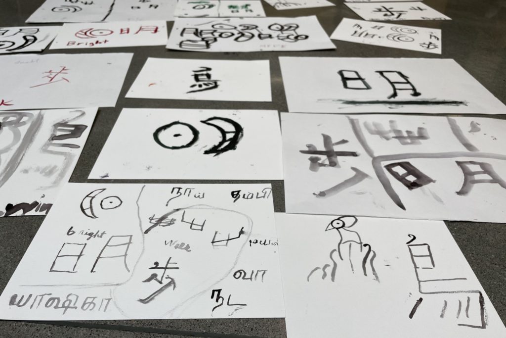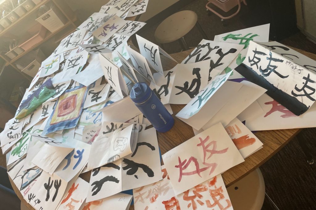 Using brushes with not only ink but also free colors and diverse materials, participants enjoy an adult “playdate” for creativity. - Calligraphy Retreat Salon